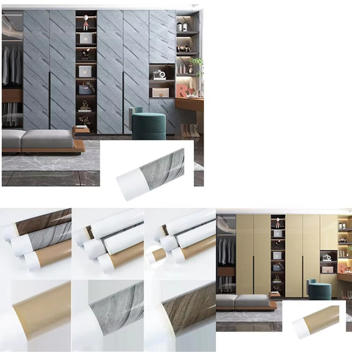 Ang PVC transfer film ay isang pandekorasyon na materyal na gumagamit ng polyvinyl chloride (PVC) film bilang substrate, inililipat ang pattern layer sa substrate surface sa pamamagitan ng high-precision printing, vacuum transfer o laser engraving technology, at pagkatapos ay tinatakpan ito ng UV coating o protective film. Kasama sa mga pangunahing tampok nito ang high-precision pattern restoration, wear resistance at weather resistance, environmental protection at non-toxicity. Ito ay angkop para sa ibabaw na dekorasyon ng mga kasangkapan, mga materyales sa gusali, mga produktong elektroniko, atbp., na pinapalitan ang tradisyonal na pag-spray at mga proseso ng sticker.